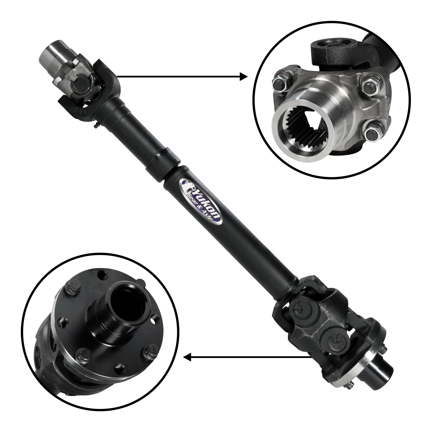 Yukon Gear & Axle performance driveshafts deliver unrivaled performance over stock, fitting vehicles with up to a 4 ½-inch lift. Yukon driveshafts feature high strength steel, 1310-1410 u-joints, and the appropriate amount of slip travel. Tested and proven in extreme motorsport competition, these complete driveshaft assemblies offer greater strength, increased operating angles, and longer life on the street, up the rocks, or down the track. Yukon offers its Y.E.S. Plan, a lifetime, comprehensive, no-questions-asked protection plan covering your driveshaft for as long as you own your vehicle.