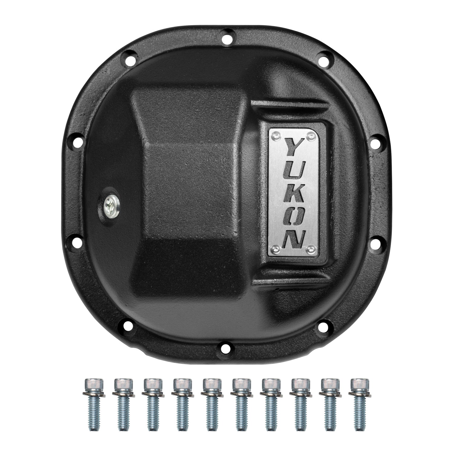 Yukon Hardcore Nodular Iron Cover for 8.8" Ford. High strength steel fasteners; Two fill plug heights; Fits Std & Reverse rotation