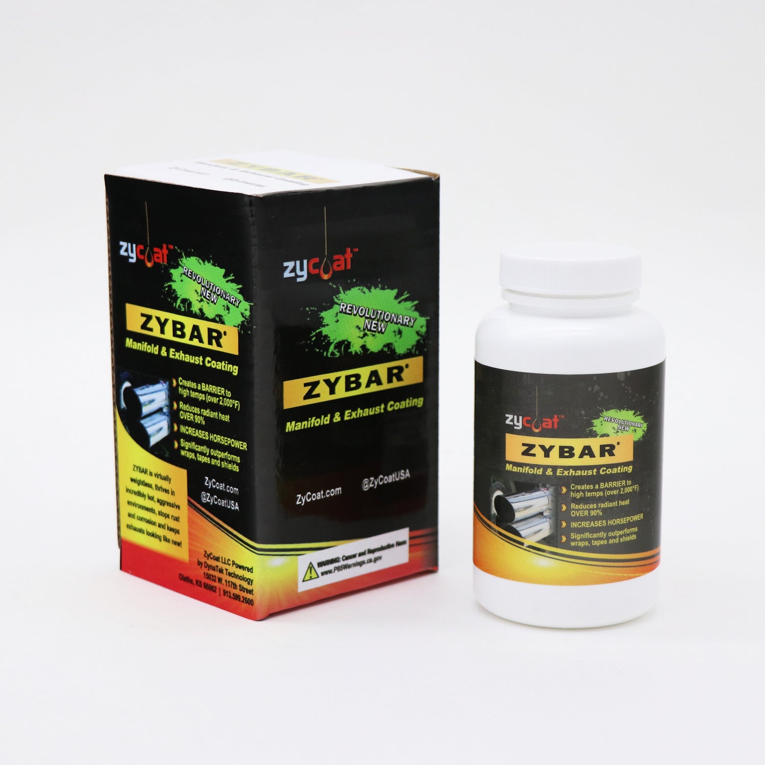ZyBar is a high temperature, highly effective thermal coating for headers, manifolds, exhausts and turbos. By greatly reducing heat, ZyBar improves scavenging performance to boost torque and increase horsepower. Utilizing advanced, micro surface technology, even a very thin .001 to .0012 mil coating of ZyBar outperforms conventional tapes, wraps, and ceramic or powder coatings. ZyBar is the only high performance, high temperature do it yourself applied coating in the industry.